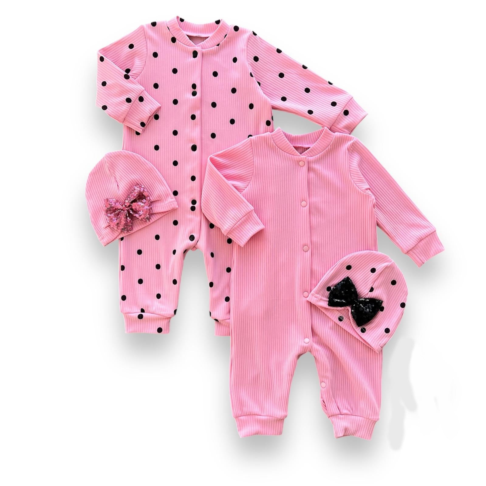 0-3 3-6 6-9 Ay Payetli Şapka Çıtçıt Kapamalı Puantiyeli Ve Düz 2 Li Kombin Kız Bebek Tulumları -