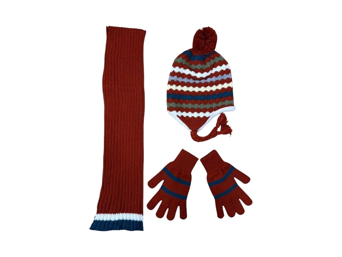 3'lü Çocuk Triko Atkı Bere Eldiven Seti (3-7 Yaş) – Kışlık Aksesuar Takımı Kırmızı -