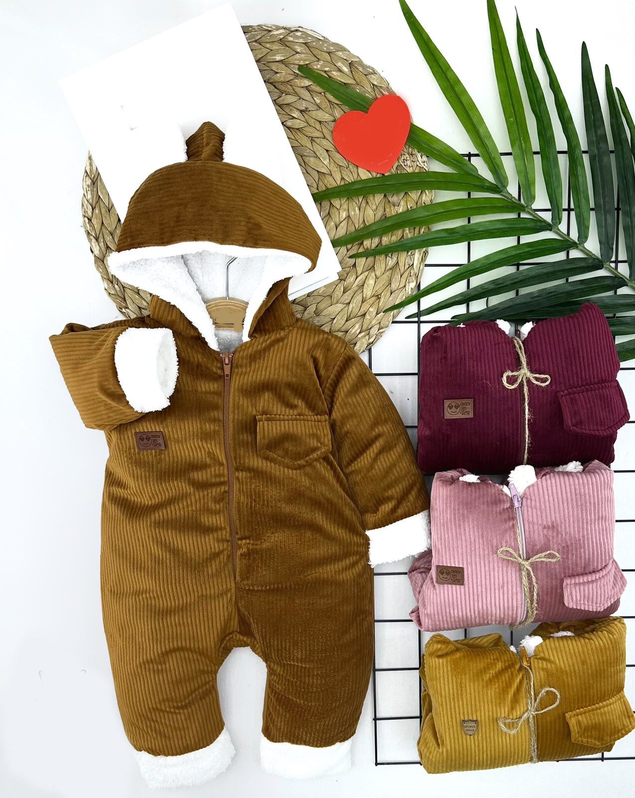 3-6-9-12 Ay Fermuar Kapamalı Kadife Kumaş İçi Tüylü Kız Erkek Bebek Tulumu -
