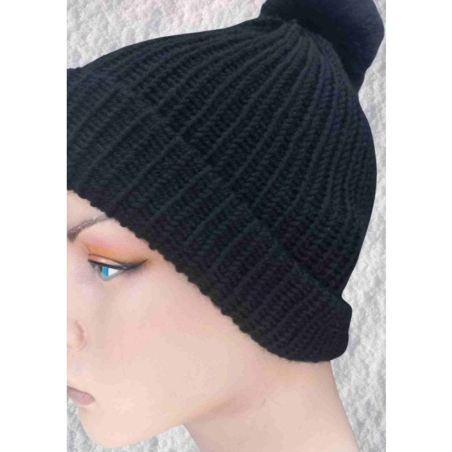 El Örgüsü Doğal Yün ve Akrilik Karışımlı Sıcacık Kış Beresi Siyah Renk -