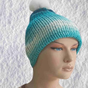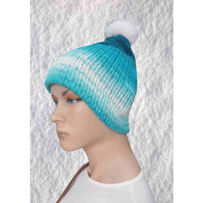 El Örgüsü Doğal Yün ve Akrilik Karışımlı Sıcacık Kış Beresi Mavi Karışık Renk -