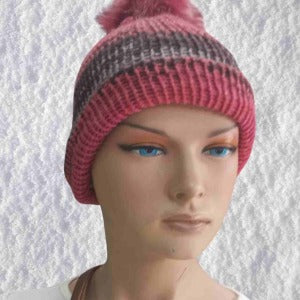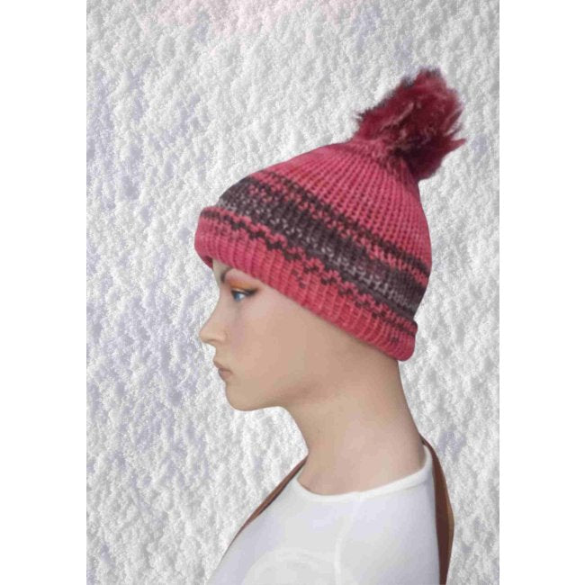 El Örgüsü Doğal Yün ve Akrilik Karışımlı Sıcacık Kış Beresi Koyu Pembe Karışık -