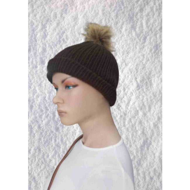 El Örgüsü Doğal Yün ve Akrilik Karışımlı Sıcacık Kış Beresi Kahverengi Renk -