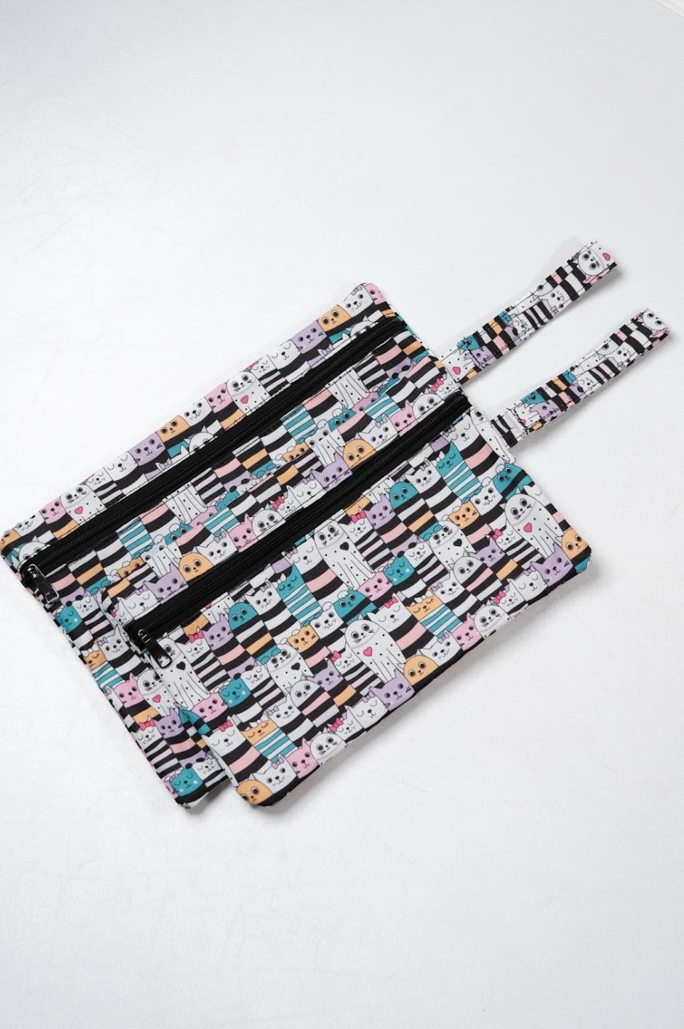 Islak/Kuru Kirli Temiz Kıyafet, Mayo, Bebek Çamaşır Çantası - Sıvı Geçirmez Kedili