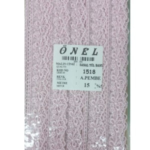 Dantel Polyester Sanal Tül Bant Açık Pembe 15 Metre En 3 cm ON-1518-AP -