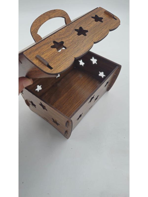 Ahşap Dekoratif Mini Sandık Kutu Ceviz Desenli -
