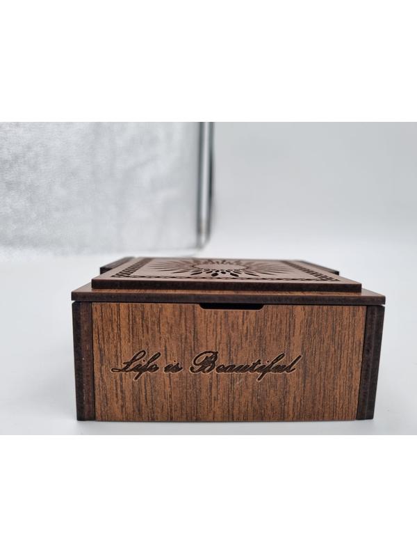 Ahşap Dekoratif Kutu Ceviz Desenli 9 cm x 9 cm x 4 cm -
