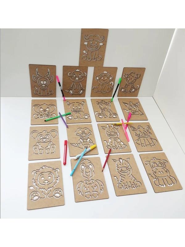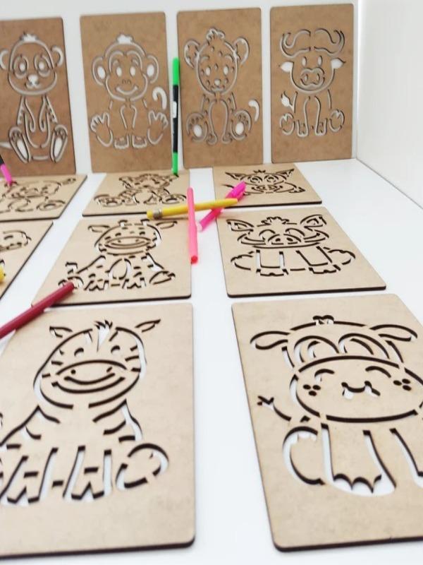 Ahşap Montessori Çizim Seti Afrika Hayvanları Kutulu 17 Adet -