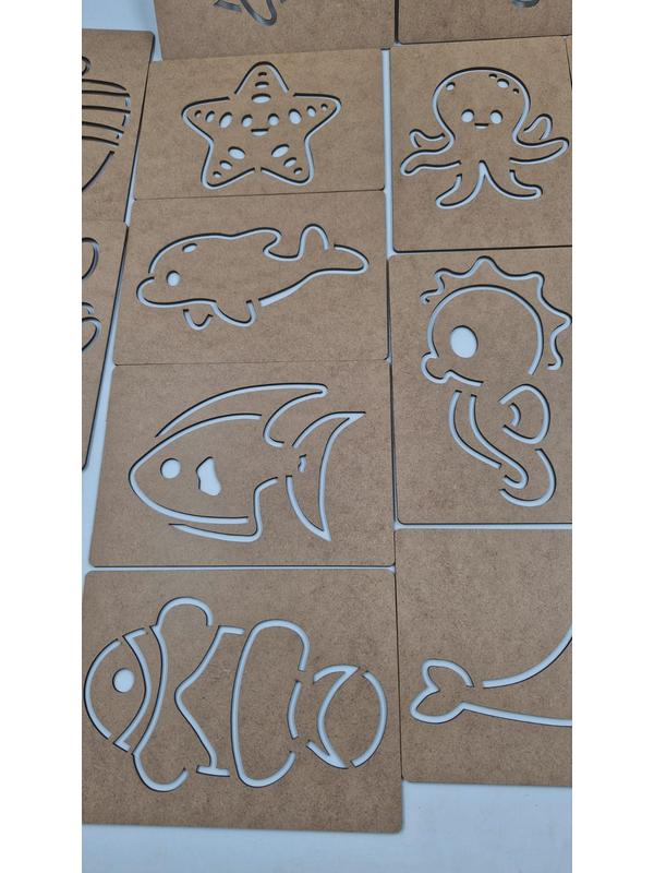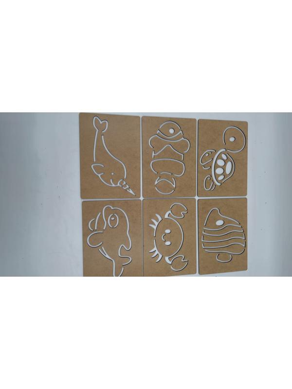 Ahşap Montessori Deniz Hayvanları Çizim Seti Kutulu 18 Adet