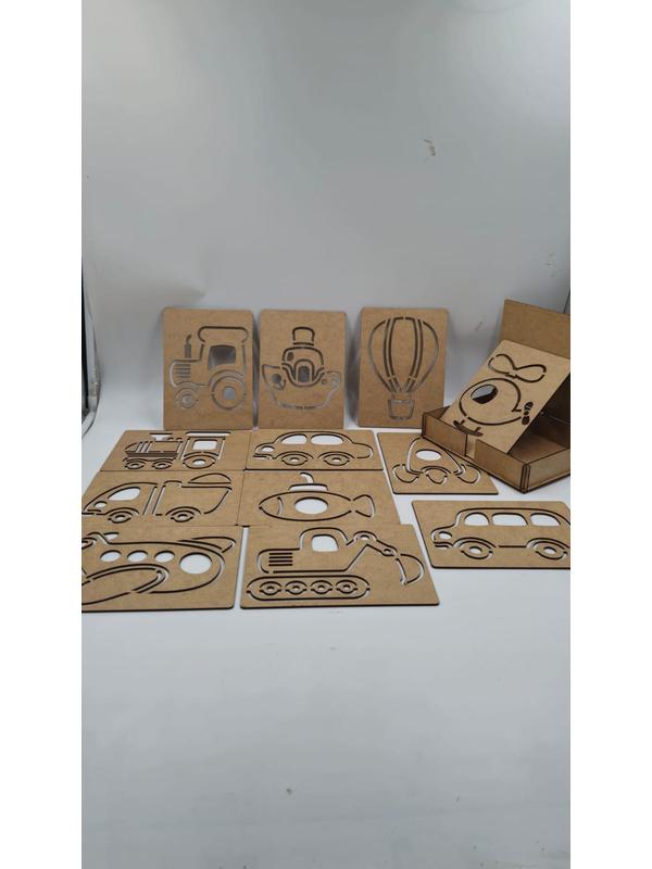 Ahşap Montessori Çizim Seti Araçlar Kutulu 15 Adet -