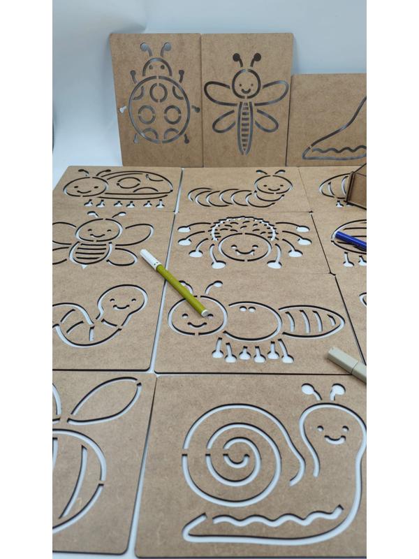 Ahşap Montessori Çizim Seti Böcekler Kutulu 15 Adet -