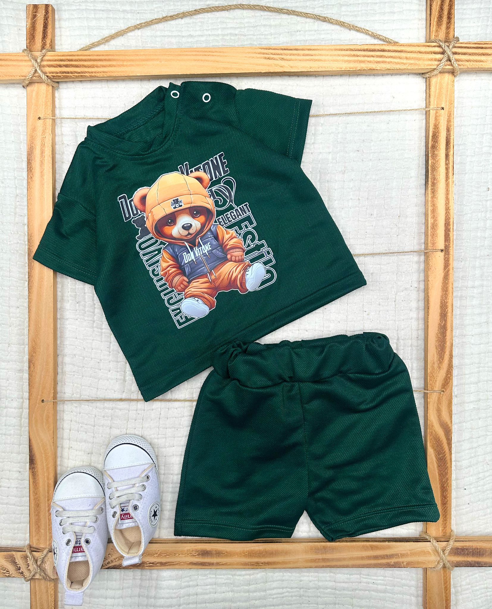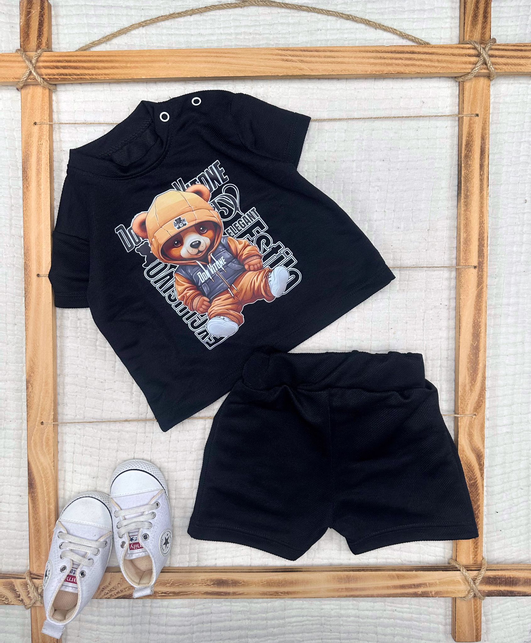 9-12-18-24 Ay Dansçı Ayıcık Baskılı Şortlu Kısa Kollu Tişört 2li Erkek Bebek Takımı -