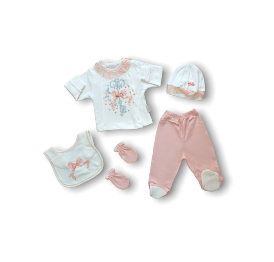 Kuzucuk Nakışlı %100 Cotton Antibakteriyel 5li Zıbın Takımı Hastane Çıkışı -