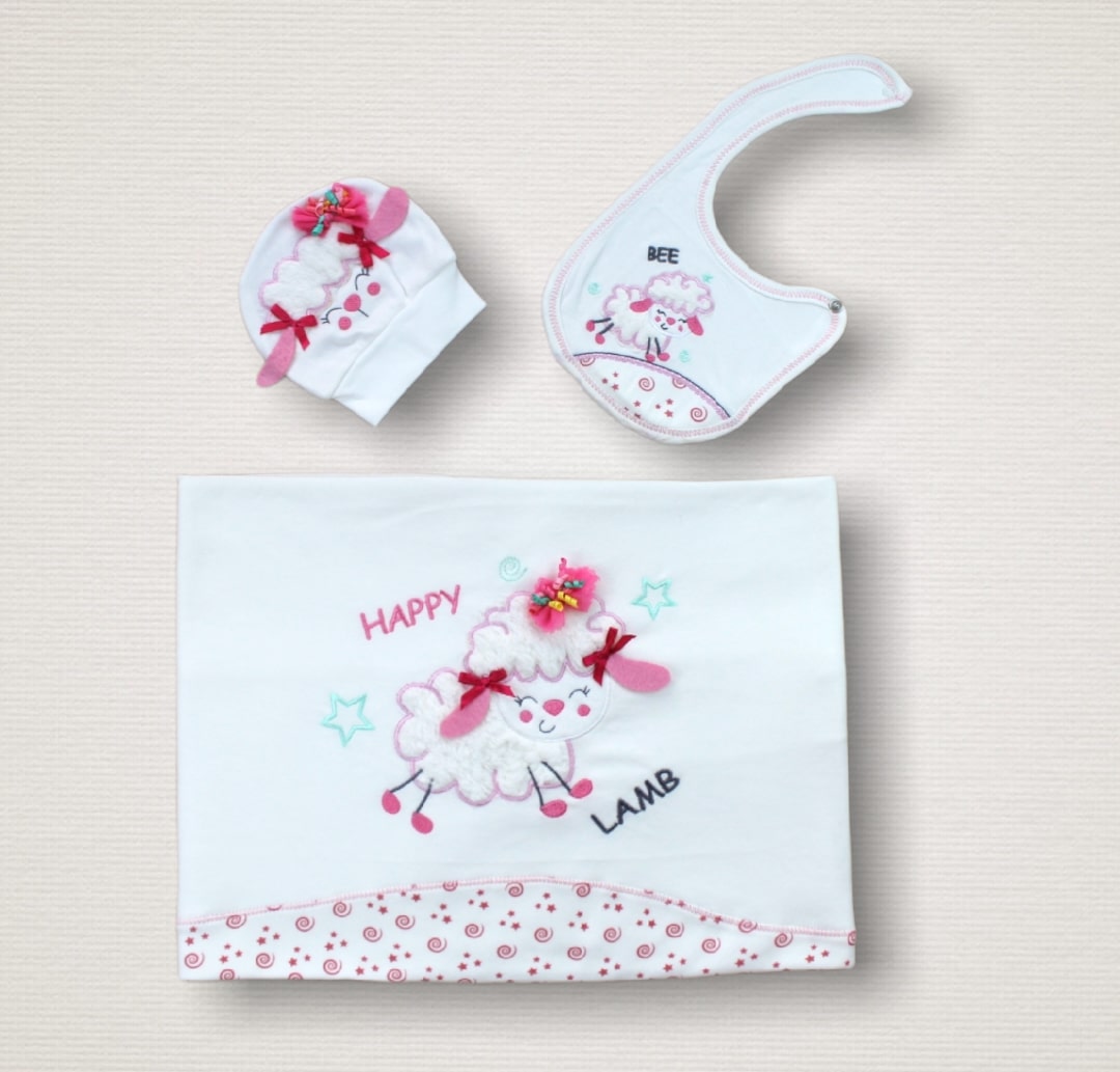Kıvırcık Kuzu Nakışlı %100 Cotton Antibakteriyel 10lu Zıbın Takımı Hastane Çıkışı -
