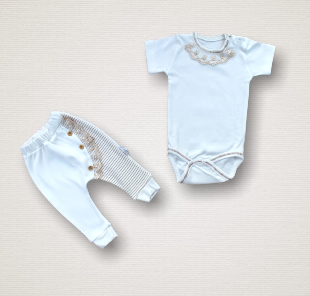 Kanaviçe Nakışlı %100 Cotton Antibakteriyel 5li Zıbın Takımı Hastane Çıkışı -