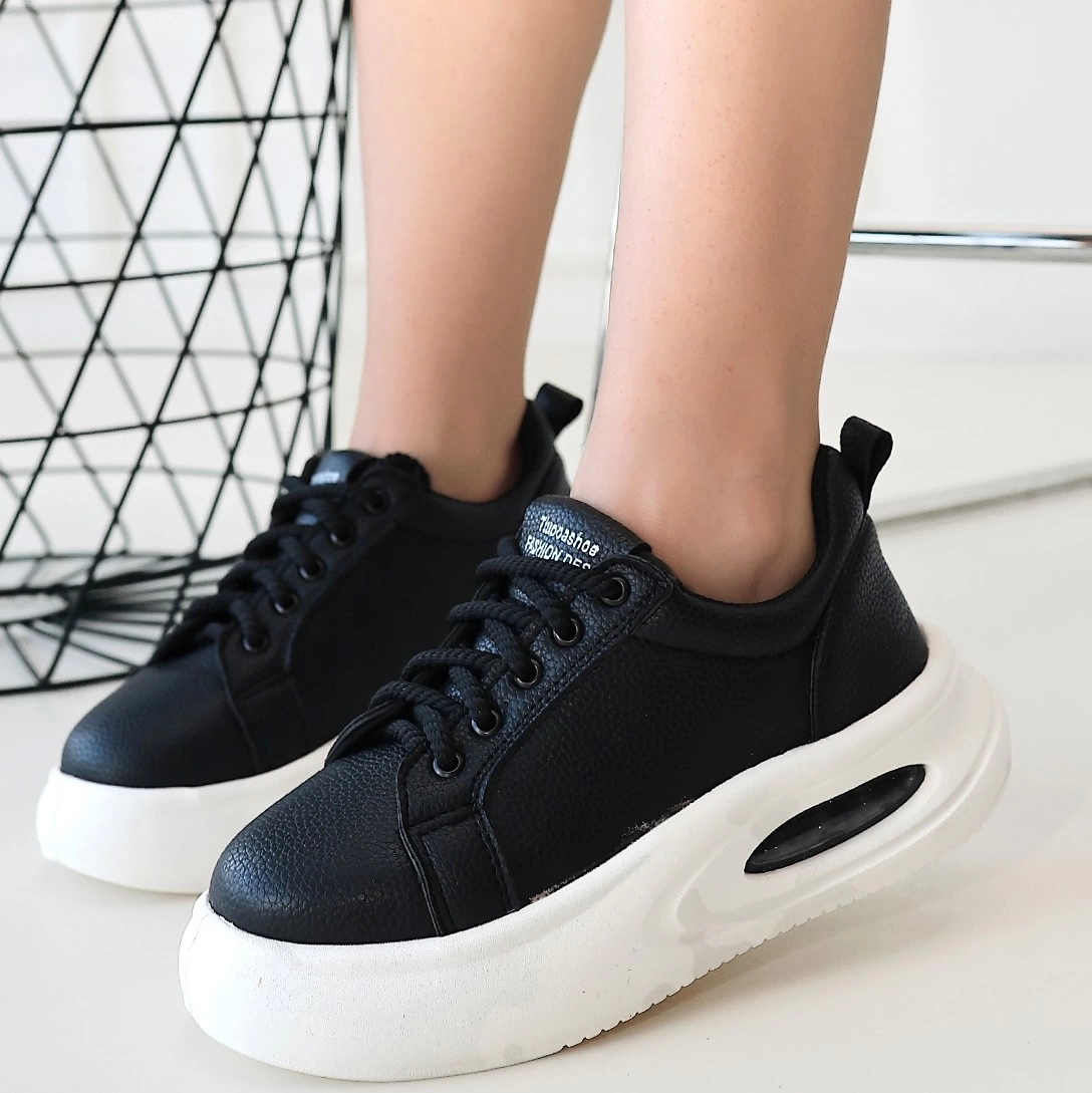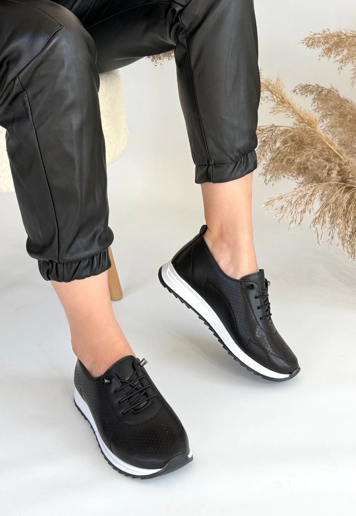 Sofio Siyah Cilt Bağcıklı Spor Ayakkabı -
