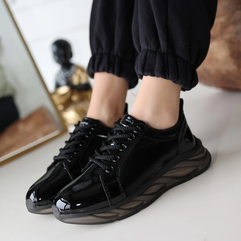 Piona Siyah Rugan Gri Tabanlı Spor Ayakkabı -