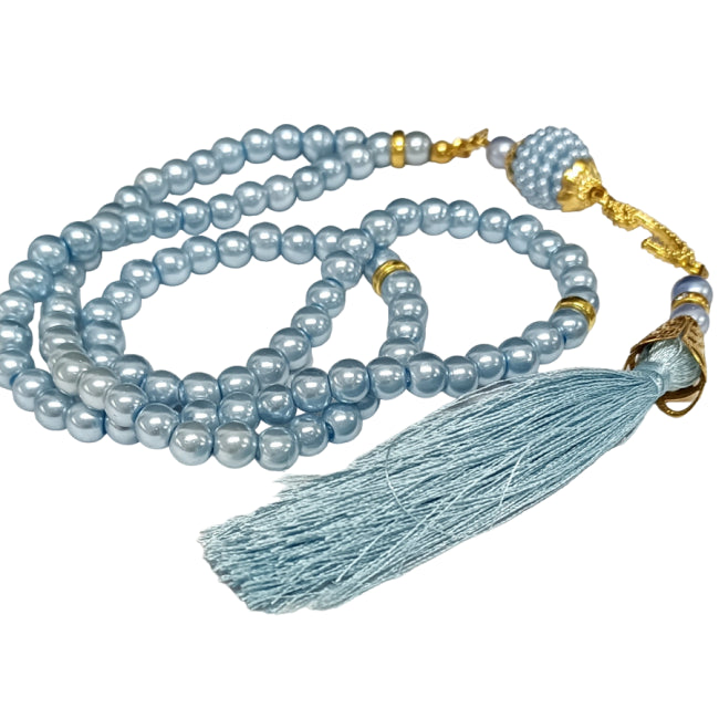 Namaz Tesbihi Vavlı 99'lu Cam İncili 35 Besmele-i Şerif Dua Kartı ile Mavi Renk Hediyelik -