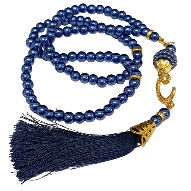 Namaz Tesbihi Vavlı 99'lu Cam İncili 35 Besmele-i Şerif Dua Kartı ile Lacivert Renk Hediyelik -
