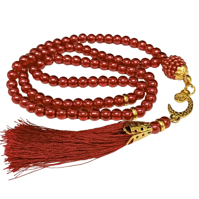 Namaz Tesbihi Vavlı 99'lu Cam İncili İsmi Azam Dua Kartı ile Fuşya Renk Hediyelik -