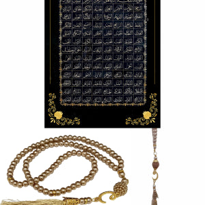 Namaz Tesbihi Vavlı 99'lu Cam İncili Esma'ul Hüsna Dua Kartı ile Süt Kahve Renk Hediyelik -