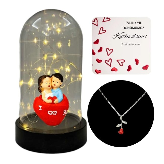 Fanus Teraryum Sevgili Ellerinde Kalp Kolye Hediyeli